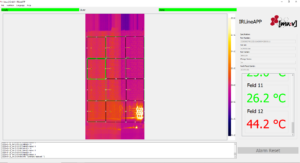 Das von muv realisierte Überwachungssystem IRLineAPP adressiert diese Anforderungen durch den Einsatz von zwei der hochauflösenden, schnellen Wärmebildkameras Optris Xi400. Im kontinuierlichen Durchlaufverfahren werden Batteriemodule während des Produktionsprozesses thermografisch erfasst. Die Systeme scannen die Oberfläche mit hoher Detailauflösung und identifizieren Temperaturpunkte, die innerhalb definierter Grenzbereiche liegen.